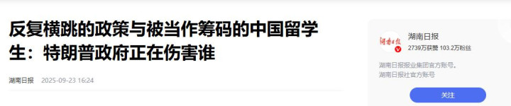 2.《反复横跳的政策与被当作筹码的中国留学生:特朗普政府正在伤害谁》湖南日报2025-09-23 16:24