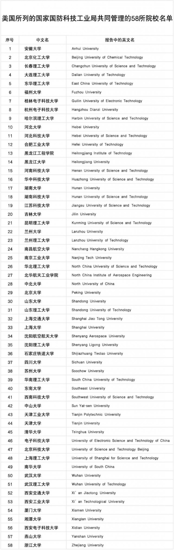 然而,国会最新的这份政策建议,彻底改变了一切,限制名单从7所暴增至58所,这不仅仅是数量上的飞跃,更关键的是,像清华、北大、上海交大、浙大这些中国最顶尖的综合性学府,赫然在列。